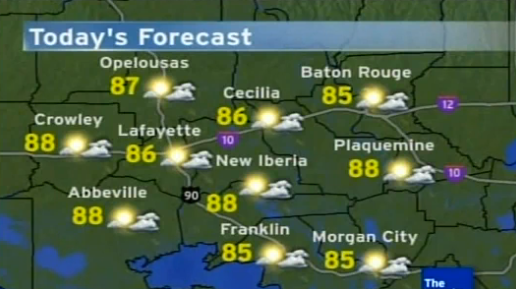 Now that I'm living in Lafayette, LA, I was just hoping that you could perform my request to improve the STAR (if it's possible). In regards to Lafayette's metro map, the view to the east is pretty decent as it includes the city of Baton Rouge. However, the metro view to the west seems pretty skimpy. Plus, weather changes usually happen in the west. Would it be possible to include Lake Charles or at least Jennings to the metro map? It would move Lafayette closer to the center and it would give the viewers here a more convenient way to see the weather further out west. (People in Lafayette have a lot of family in both Baton Rouge and Lake Charles, so I'm sure they would also like the change.) Other than that, the STAR here looks great. I appreciate your consideration and time for my request. Thank you.